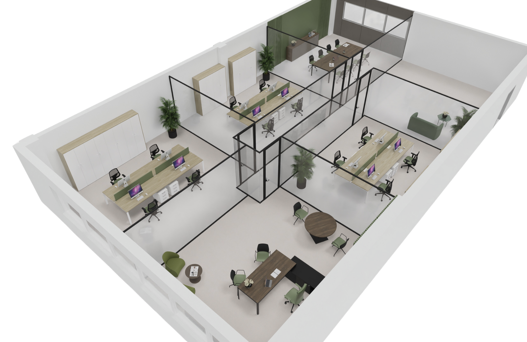Questo progetto è un esempio del nostro approccio alla progettazione interna. Abbiamo selezionato con cura sedute operative e d’attesa firmate Kastel e scrivanie e postazioni direzionali della linea About, integrandole perfettamente nel concept complessivo per creare un ambiente che unisce design, funzionalità e comfort.